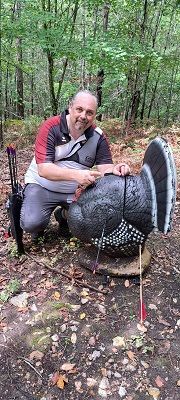 Tag 1 konnte ich mit dem zweiten Platz beenden und dann ging es ins Hotel. Am Samstag war um 9.15 Uhr Schießbeginn und diesmal mussten wir uns mit der Hunterrunde anfreunden. Schwierigkeit hier, 1 Pfeil, hopp oder flop! Heute war es kälter als gestern und der stellenweise Regen machte die Sache nicht einfacher. Ein ebenfalls schön gestellter Parcours, den ich allerdings gleich mit 4 "Miss" begonnen hatte. Am Ende waren es bei 28 Zielen 12 Fehlschüsse und "nur" noch Platz 3.