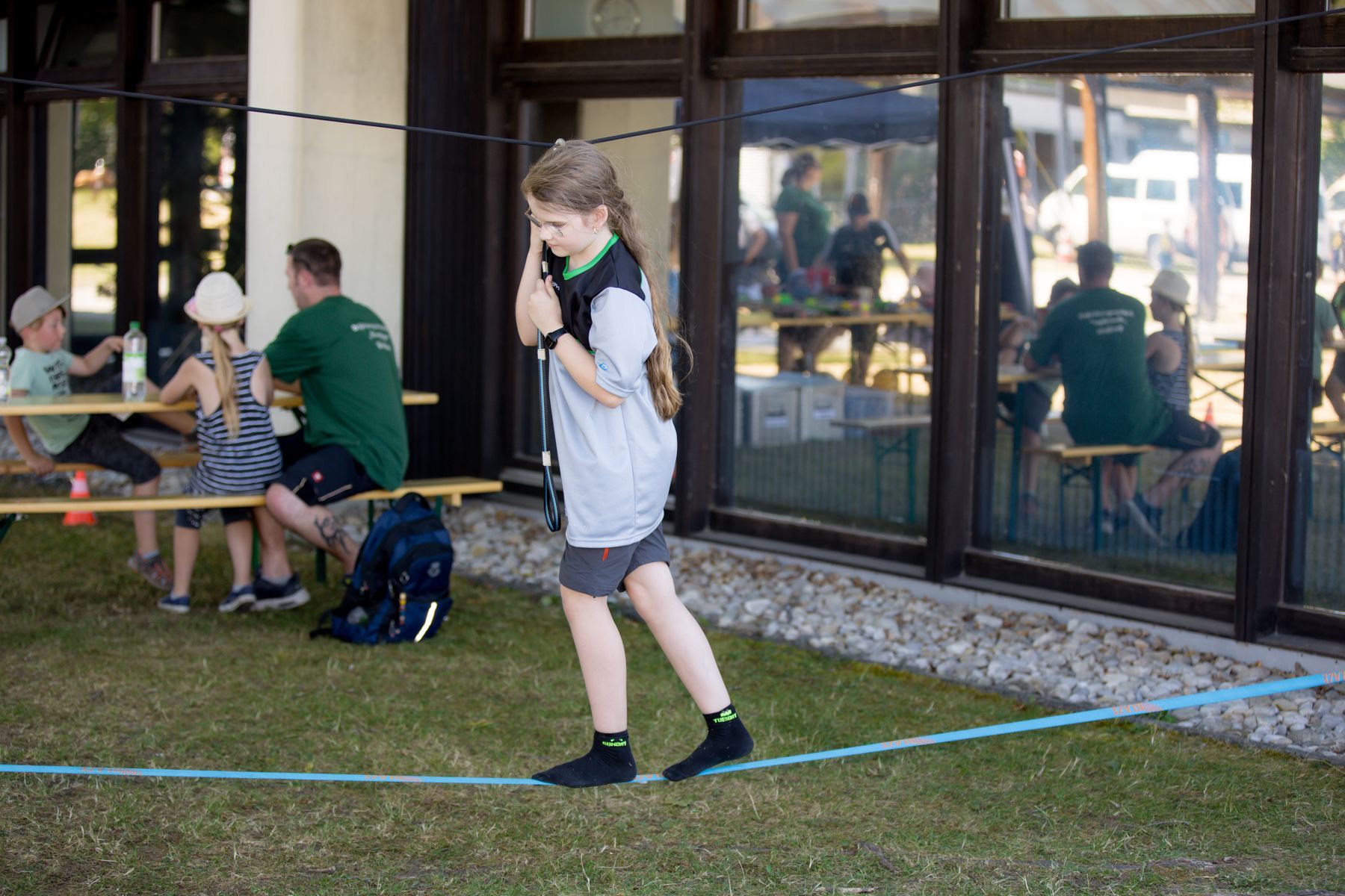 Toller Schuß mitten im Turnier! Niemand musste, jeder konnte: Über eine ca. 20 m tiefe Schlucht auf einen in der Felswand hängenden Drachen konnten mutige