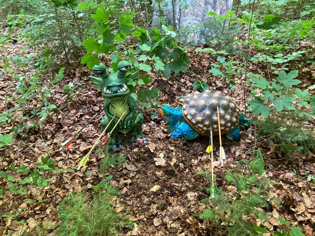 Am Freitag ging es nach der Ansprache und Begrüßung pünktlich zu den Stationen und um 09.30 Uhr flogen die ersten Pfeile. Für die Langbogen Herren ging es mit der 3-Pfeil-Runde los. 28 Stationen unbekannter Entfernung von 0 bis 54 Meter, kleine Tiere auf irgendwie ganz schön