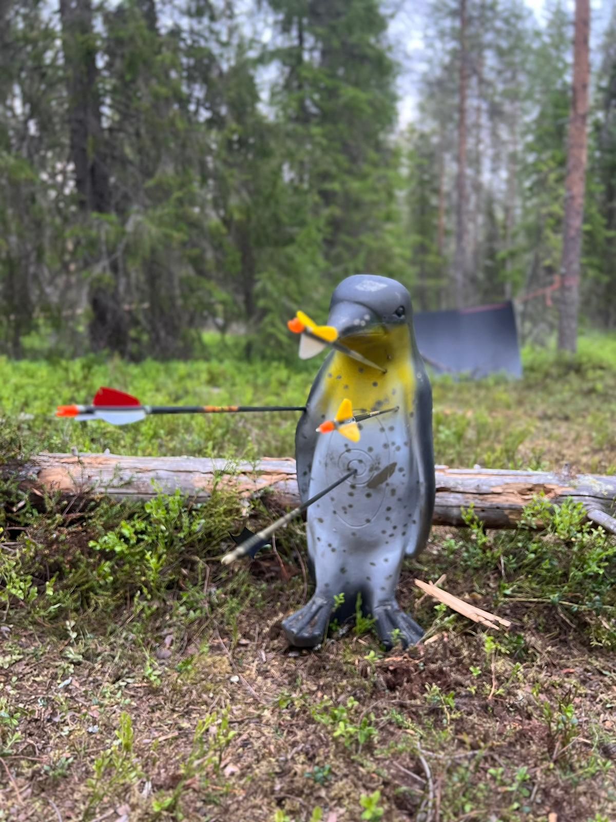 Abteilung 3: Die Compoundschützen: Die Compounder treten auf wie eine Mischung aus Westernhelden und Technikliebhabern. „Wir - haben Power“, sagt Claus zufrieden, während er den ersten Pfeil einlegt, der aussieht wie ein Wasserrohr. Er hebt den Bogen. Bumm. Ein sauberer Einschlag – direkt in den Tannenbaumstamm. Dann der Werner: Bumm. Diesmal das Rentier am Huf. Der dritte Schuss - von Thomas - geht einen Hauch daneben und sorgt dafür, dass der Weihnachtsmann plötzlich ein sehr großes Ohrpiercing hat.